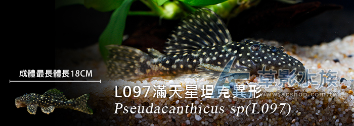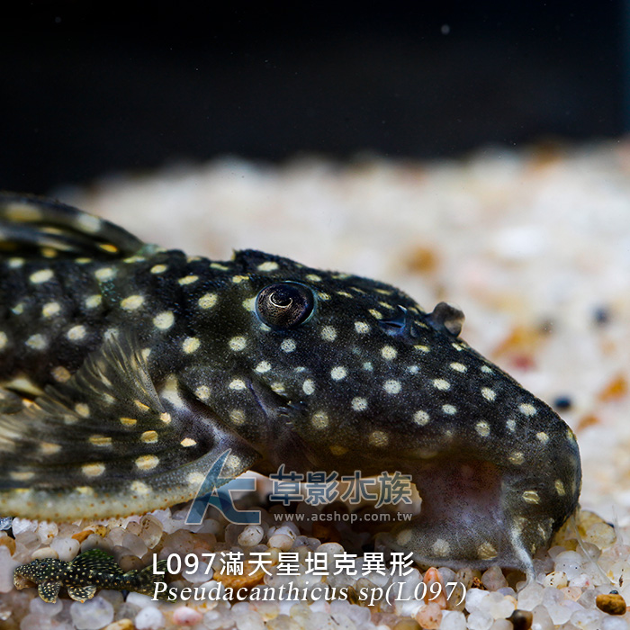 商品屬性 [國際學名] Pseudacanthicus sp(L097) [活體補償] 1. 魚蝦叨穩後出貨,如有運送途中造成死亡,當次死亡於下次訂購時補償,所有螺類部分均無提供補償。