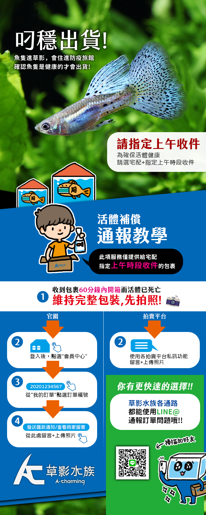 3. 活體收件時間需指定上午收件,其餘時段需自行承擔死傷風險。