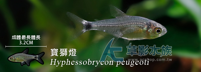 商品屬性 [國際學名] Hyphessobrycon peugeoti [活體補償] 1. 魚蝦叨穩後出貨,如有運送途中造成死亡,當次死亡於下次訂購時補償,所有螺類部分均無提供補償。