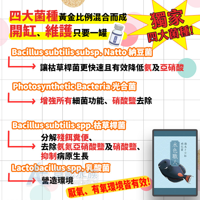1. 此為活菌產品,切勿過量使用。過量添加請加強打氣,待水質恢復清潔。