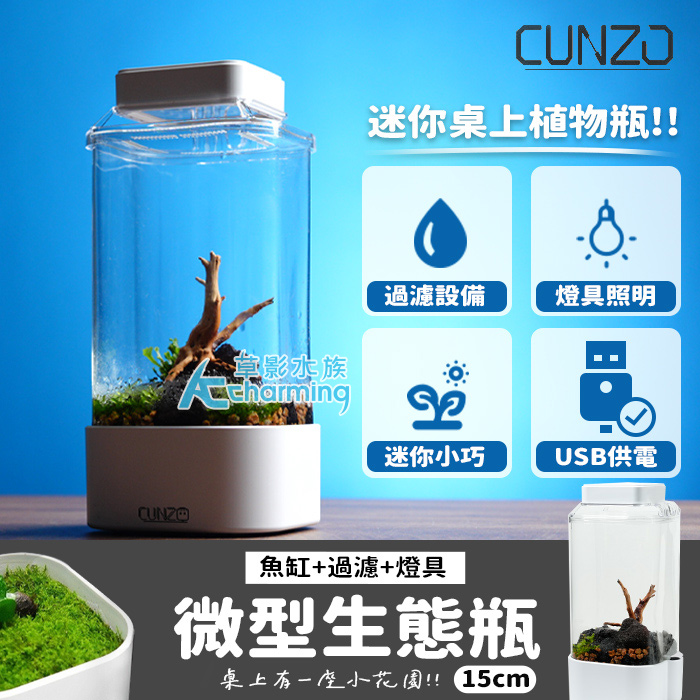 1. 迷你桌上植物瓶(魚缸+過濾+燈具),迷你小巧,USB供電。