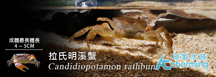 商品屬性 [國際學名] Candidiopotamon rathbuni [活體補償] 1. 魚蝦叨穩後出貨,如有運送途中造成死亡,當次死亡於下次訂購時補償,所有螺類部分均無提供補償。