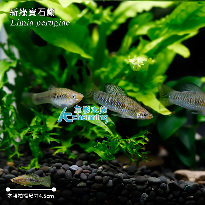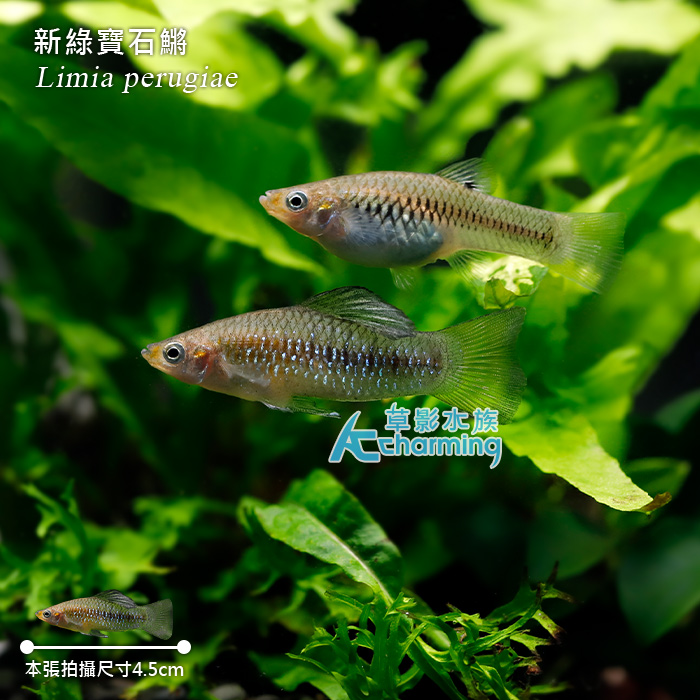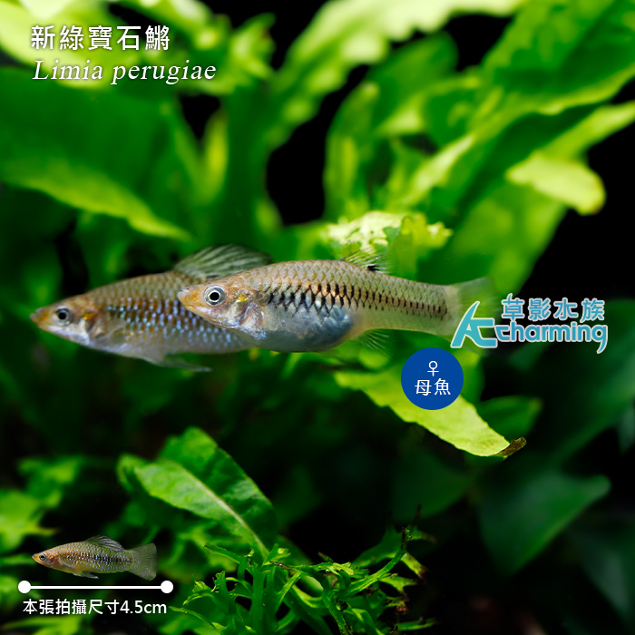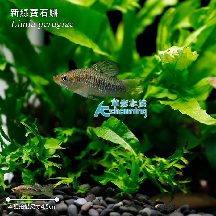 商品屬性 [國際學名] Limia perugiae [販賣大小] 約4.5cm [活體補償] 1. 魚蝦叨穩後出貨,如有運送途中造成死亡,當次死亡於下次訂購時補償,所有螺類部分均無提供補償。