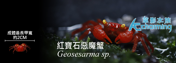 商品屬性 [國際學名] Geosesarma sp. [販賣大小] 甲寬約1cm [活體補償] 1. 魚蝦叨穩後出貨,如有運送途中造成死亡,當次死亡於下次訂購時補償,所有螺類部分均無提供補償。