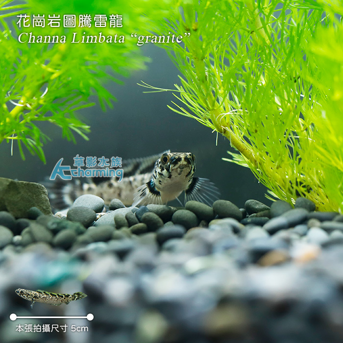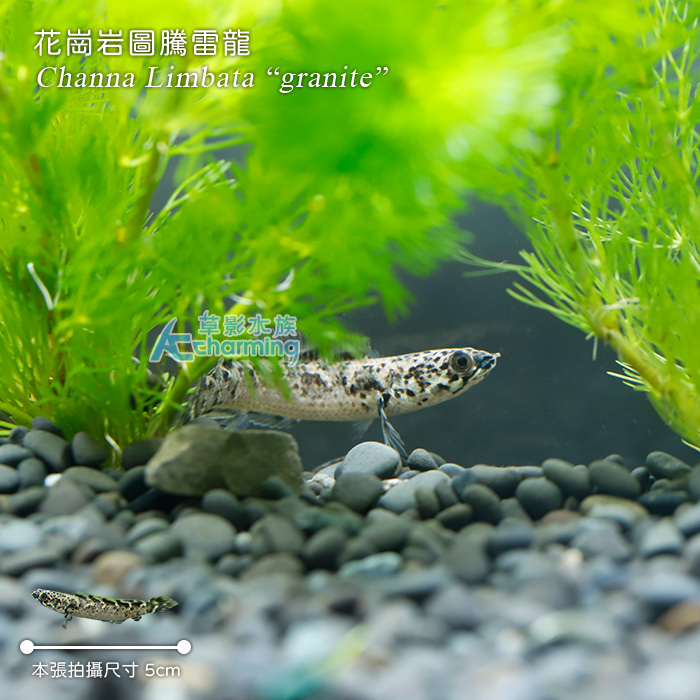 4. 如有活體死亡請於收件後60分鐘內拍照回傳,拍照需包含未拆封的原始魚袋完整包裝。[國際學名] Channa Limbata “Granite” [活體種源] 人工繁殖品種 [養殖難度] ★ [PH] 6.0~7.5 [GH] 2~18 [KH] 3~18 [溫度] 22~31度 [單位數量] 一隻 [販賣大小] 不分公母,隨機出貨