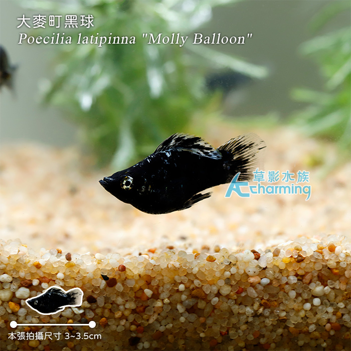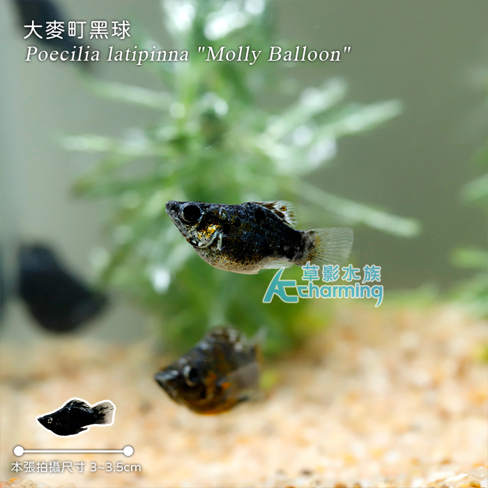 4. 如有活體死亡請於收件後60分鐘內拍照回傳,拍照需包含未拆封的原始魚袋完整包裝。[販賣大小] 約2-2.5公分 [國際學名] Poecilia latipinna "Molly Balloon"