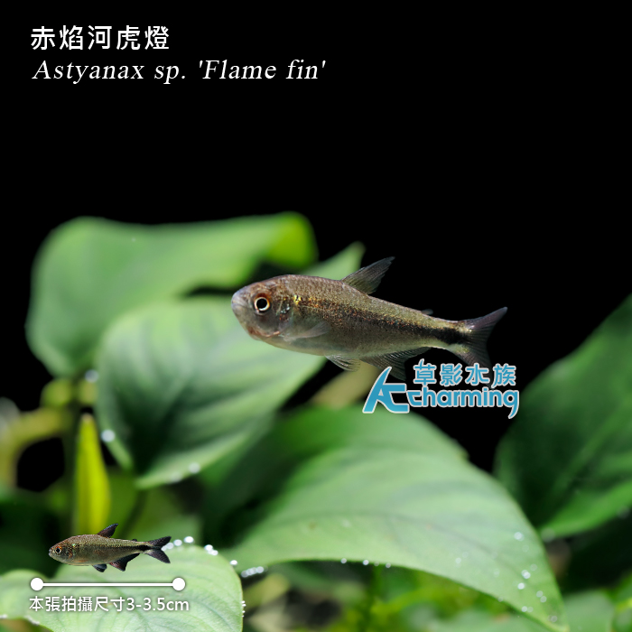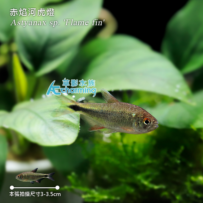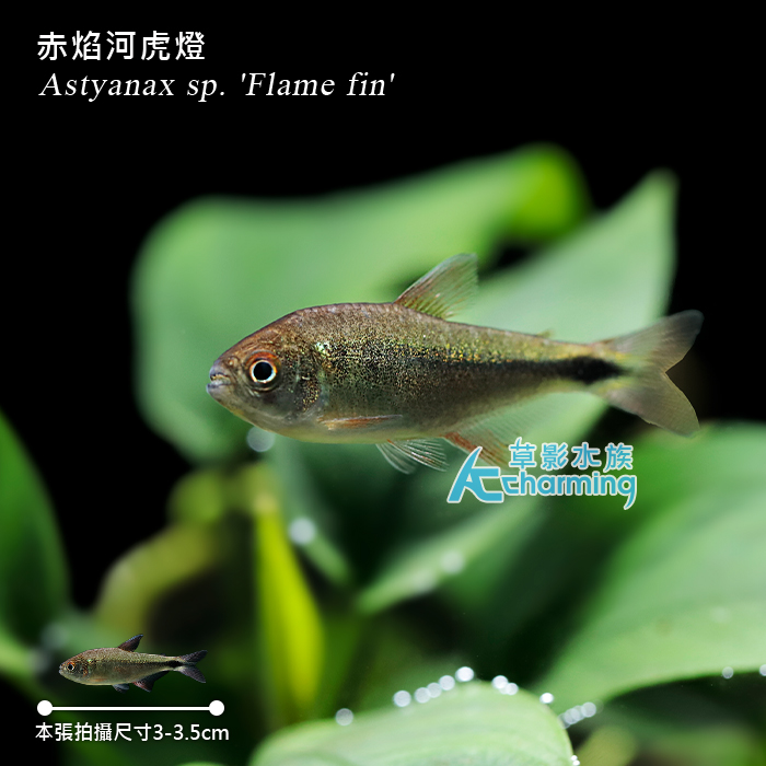 4. 如有活體死亡請於收件後60分鐘內拍照回傳,拍照需包含未拆封的原始魚袋完整包裝。[活體種源] 國外野生品種 [養殖難度] ★★ [PH] 5.8~7.5 [單位數量] 一隻 [國際學名] Astyanax sp. 'Flame fin'