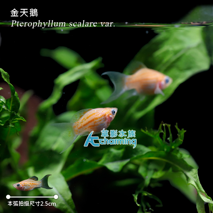 商品屬性 [國際學名] Pterophyllum scalare var. [販賣大小] 不分公母,隨機出貨 [活體補償] 1. 魚蝦叨穩後出貨,如有運送途中造成死亡,當次死亡於下次訂購時補償,所有螺類部分均無提供補償。