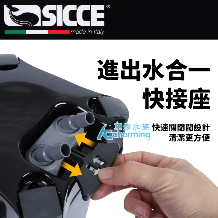 1. 義大利品牌,高效穩定過濾,SICCE 原廠設計製造,馬達穩定耐用,長時間運轉依然安靜順暢,打造穩定水質環境。