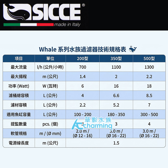 產品名稱:SICCE 希捷 鯨魚 WHALE 350 圓桶過濾器