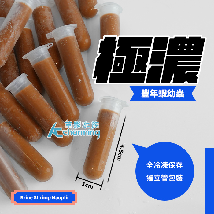1. 極濃豐年蝦幼蟲,專為魚苗、小型魚與小口徑魚種設計,採用冷凍保存與獨立管裝方式,取用方便、保存更簡單。
