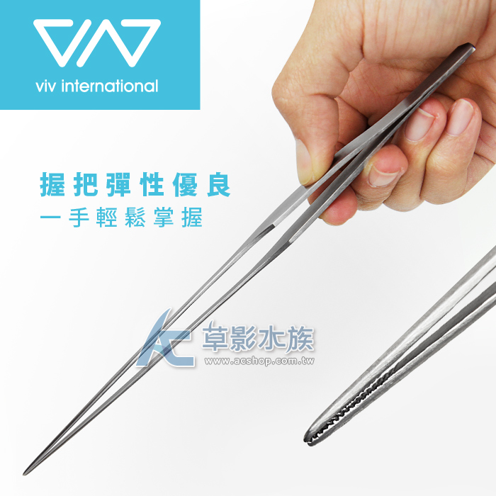 產品名稱:VIV 2017 第二代髮絲紋不鏽鋼水草夾(尖頭/27cm)