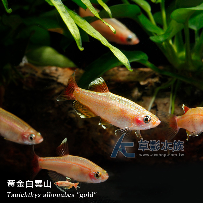 4. 如有活體死亡請於收件後60分鐘內拍照回傳,拍照需包含未拆封的原始魚袋完整包裝。[活體種源] 人工繁殖品種 [養殖難度] ★ [PH] 5.8~7.6 [GH] 2~12 [KH] 2~15 [溫度] 22~30度 [單位數量] 五隻 [販賣大小] 約1.3~1.5cm [國際學名] tanichthys albonubes "gold"