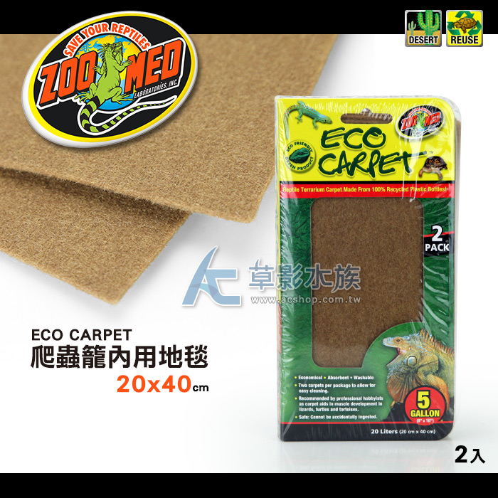 產品名稱:ZOO MED 爬蟲籠內用地毯2入(咖啡色/20x40cm)