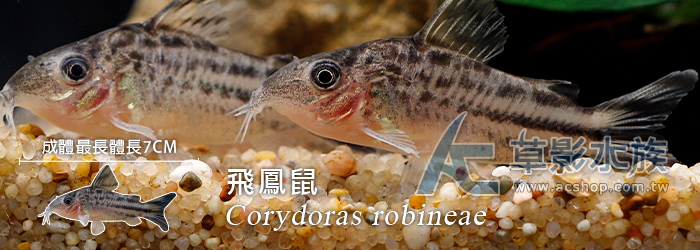 商品屬性 [國際學名] Corydoras robineae [活體補償] 1. 魚蝦叨穩後出貨,如有運送途中造成死亡,當次死亡於下次訂購時補償,所有螺類部分均無提供補償。
