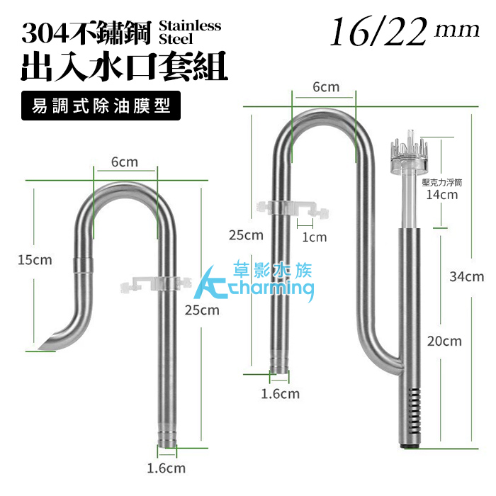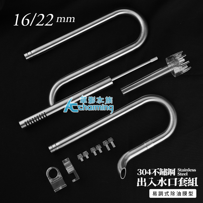 產品名稱:304不鏽鋼 2代 出入水口套組(16/22)易調式除油膜型