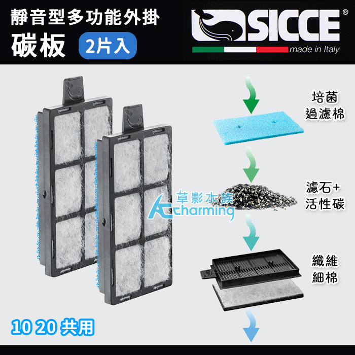 1. SICCE 希捷靜音型多功能外掛過濾器(10/20型)專用替換活性碳板(2片裝),為義大利進口。